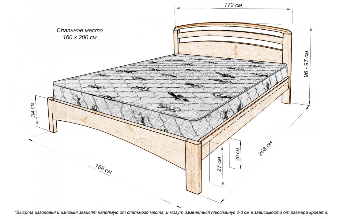 кровать Кровать Бостон выполнена из натурального древесного массива, имеет устойчивые ножки и дугообразные изножье с изголовьем. модель отличается износостойкостью, прочностью, лаконичным дизайном и надёжной конструкцией. купить изделие по специальной цене можно в интернет-магазине. Осуществляется доставка на дом по Орехово-Зуево и Московской области .| Размер | Цена | |