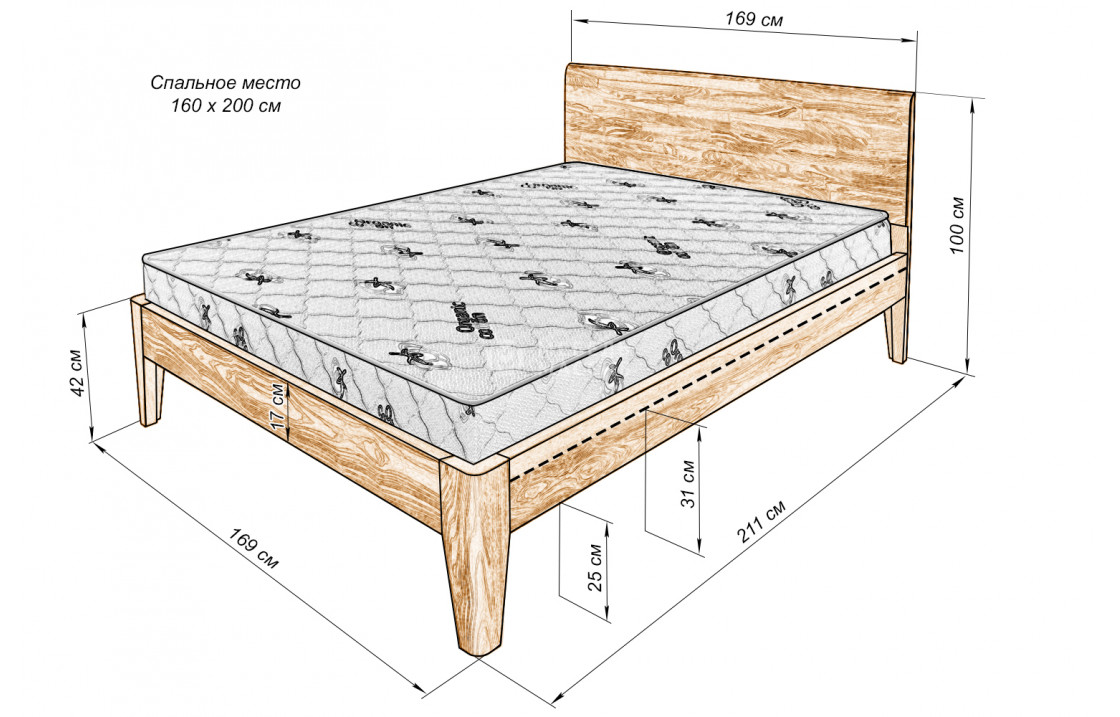 140x200 - глубина уменьшается на 100 мм = 685 мм