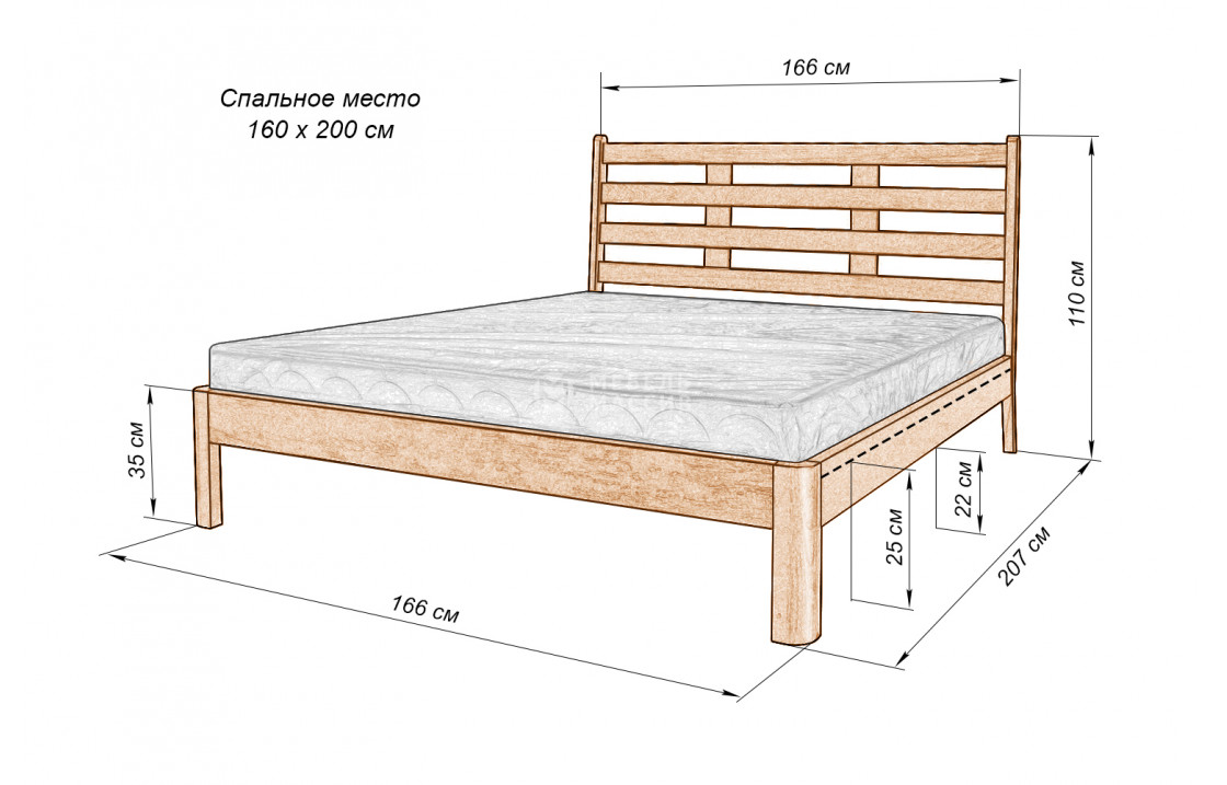 Кровать Морфей имеет минималистичный дизайн: высокое реечное изголовье, отсутствующее изножье и высокие устойчивые ножки. Изделие, которое можно купить по демократичной цене в нашем интернет-магазине, изготовлено из экологически чистого древесного массива и покрыто защитным лаком. Осуществляется доставка на дом по Орехово-Зуево и Московской области .| Размер | Цена | |