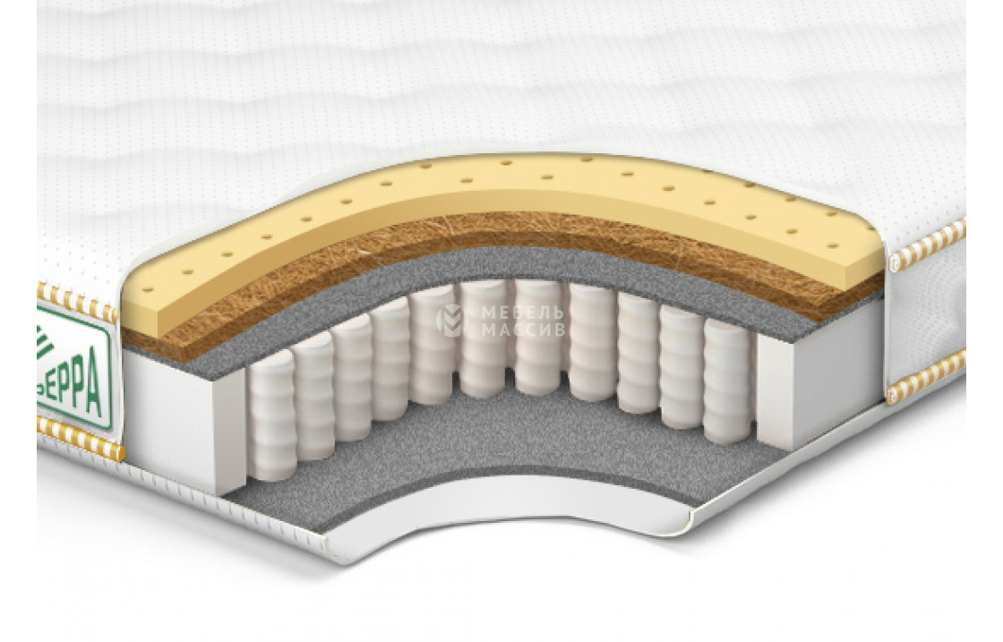 - Кокос 2 см ? Кокос - переплетенные волокна кокосового ореха, растительного происхождения. Исключительные свойства кокоса в прочности, упругости и гигиеничности. Материал придает жесткости матрасу. Обладает отличной вентилируемостью, устойчив к любой влажности и перепадам температуры, гипоаллергенный и долговечный.