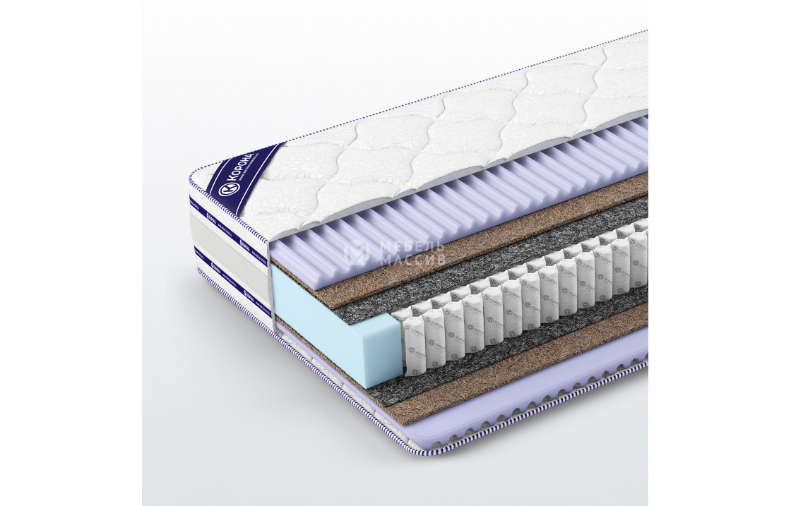 Кокос - переплетенные волокна кокосового ореха, растительного происхождения. Исключительные свойства кокоса в прочности, упругости и гигиеничности. Материал придает жесткости матрасу. Обладает отличной вентилируемостью, устойчив к любой влажности и перепадам температуры, гипоаллергенный и долговечный.