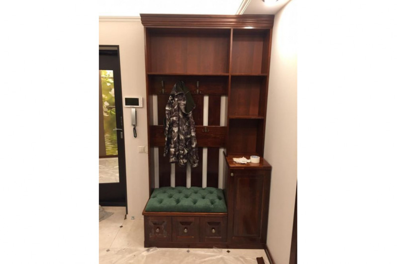 Прихожая из натурального дерева , массив сосны , цвет красно-коричневый 3 , мебель выполнена по индивидуальному проекту.