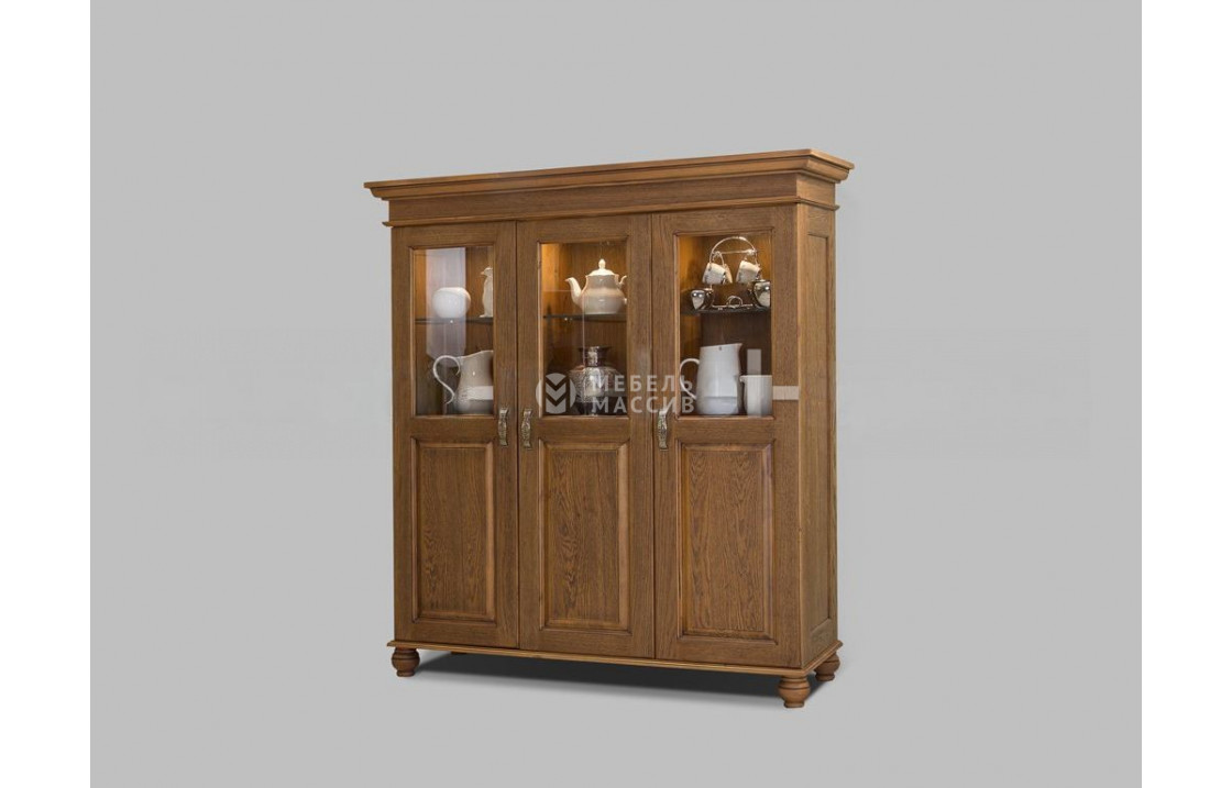 Трехстворчатый сервант из коллекции Винтаж – интересный представитель современной мебели, которую можно легко адаптировать и под классические интерьеры. Он имеет средние габариты и хорошую вместительность. Внутреннее пространство корпуса модели занимают полки, одна часть которых расположена за стеклом, а другая – за монолитным элементом створки. Благодаря наличию застекления в серванте можно хранить декоративные предметы, которые хочется выставить напоказ. Вместе со стеклом материалом изготовления изделия служит настоящее цельное дерево, обеспечивающее надежность и продолжительную эксплуатацию. Доставка по Орехово-Зуево и Московской области .| Размер | Цена | |