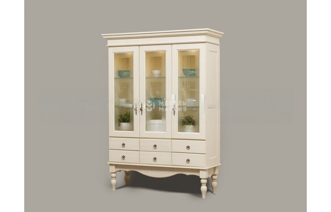 Винтаж 3 – сервант с классическим внешним видом, предназначенный для хранения декоративных предметов и прочей утвари. Данная модель оборудована тремя створками со стеклянными вставками, а также шестью ящиками на направляющих. Вся конструкция слегка приподнята над полом благодаря высоким резным ножкам. Изготовлены все деревянные элементы из натурального массива. Материал проходит предварительную обработку, далее его покрывают специальными пропитками для обеспечения дополнительной защиты от вредных внешних воздействий и растрескивания поверхностей, что увеличивает сроки эксплуатации. Доставка по Орехово-Зуево и Московской области .| Размер | Цена | |