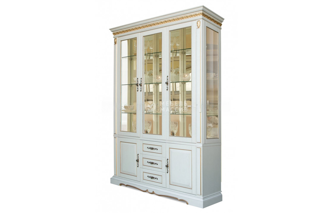 Трехстворчатый сервант Милано – качественное изделие премиум-сегмента, которое станет центром внимания в любом помещении. Оно изготовлено из массива сосны, поэтому обладает высокой прочностью, отлично противостоит механическим нагрузкам. Помимо дерева для изготовления серванта применяют стекло, из которого сделаны витражи и полки. Для обработки деревянной поверхности задействуют современные лакокрасочные материалы. Цвет дерева, а также образцы ручек для открытия/закрытия можно подобрать из предложенных вариантов на странице товара.