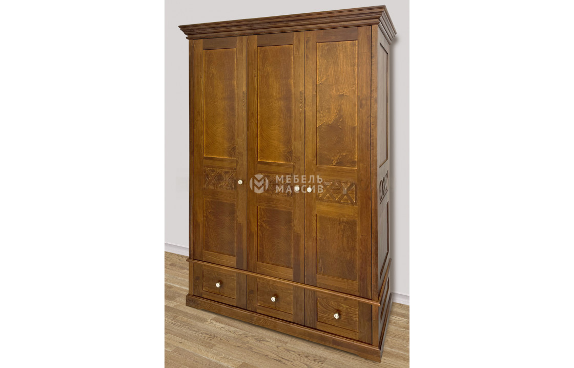 Трехстворчатый шкаф Дубрава – это классический образец мебели, который придется по вкусу всем, кто ценит изысканность и элегантность в интерьере. Его внешний вид поражает своей роскошью, благодаря использованию массива натурального дерева в качестве главного материала и широкой цветовой палитре. Лаковое покрытие придает еще больше изыска и акцентирует внимание на прекрасной древесной текстуре. Одной из особенностей модели является сплошное основание, обеспечивающее устойчивость и надежность. Этот шкаф отличается своей вместительностью и долгим сроком службы, что делает его отличным выбором для любого дома. Доставка по Орехово-Зуево и Московской области .| Размер | Цена | |