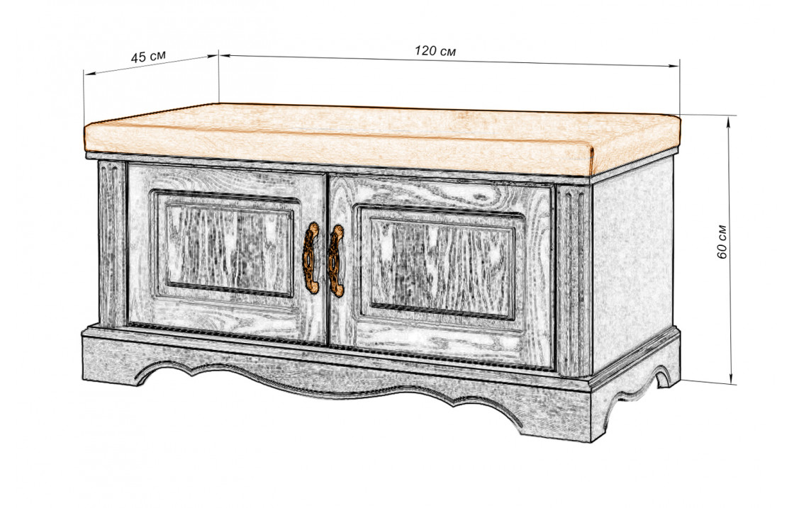 Тумба-банкетка Валео из массива натурального дерева. изделие представлено в четырёх вариантах исполнения из древесины на выбор: сосна, берёза, бук или дуб. широкий выбор цветов позволяет органично вписаться в любой интерьер. отличается износостойкостью, прочностью, лаконичным дизайном. купите изделие по выгодной цене с доставкой на дом в интернет-магазине «мебель массив».| Размер | Цена | |